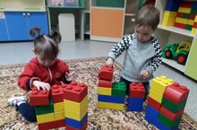 В первой младшей группе строительные игры.Строительные игры -это творческая деятельность, которая открывает широкие возможности детей для проявления инициативы. В процессе игры дети постоянно прибегают к сравнению цвета деталей, их величины, формы.