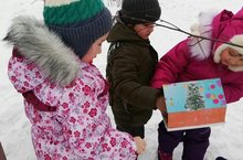 Мослим авылы "Карлыгач" балалар бакчасынын мэктэпкэ эзерлек торкеме балалары, саф хавада уеннарны бик яраталар. Нинди генэ хава торышы булмасын, саф хавада булу балалар очен бик файдалы.