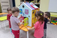 "Карлыгач" балалар бакчасының урта төркем балалары белән вак моториканы , фикерләүне һәм логиканы Бизиборд ярдәмендә үстерәбез.