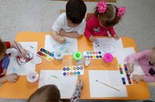 Мөслим "Карлыгач " балалар бакчасының беренче кечкенәләр төркемендә рәсем эшчәнлеге. Балалар акварель буяулар ярдәмендә түгәрәк ясарга өйрәнәләр.