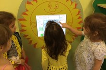 Воспитанники средней группы играют в интерактивные игры на интерактивной сенсорной панели "Солнышко".