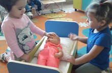Икенче кечкенәләр төркемендә интеграль эшчәнлек "Туп". Ә. Бикчәнтәева шигыренең эчтәлеген аңларга, сәнгатьле сөйләргә өйрәндек. Әминәнең тубын матур итеп бизәп ябыштырдык.