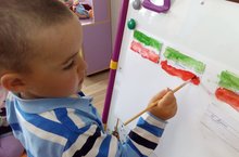 Бүген бакчабызның икенче кечкенәләр төркемендә кызыклы математика. Балалар кубик һәм түгәрәк белән таныштылар. Эшчәнлекләрдә балаларның санау күнекмәсе үстерелә; бер-күп төшенчәсе ныгытыла. Тәрбияче балаларга зур һәм кечкенә төшенчәләре турында мәгълүмат бирде. Балалар предметларның зур һәм кечкенәсен аера белергә өйрәнделәр. Тәрбияче эшчәнлектә үстерелешле әңгәмәләр алып барды.
