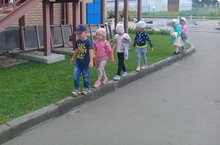 Беренче кечкенәләр төркеме балалары белән балалар бакчасы тирәли сәяхәт итү.Кулга кул тотынышып, парлы көе колонна ясап йөрергә өйрәнү.