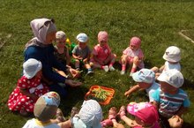 Бакчабызның зурлар төркеме тәрбиячесе Алисә Мәрданова һәм кече тәрбияче Миләүшә Габидуллина балаларны Мөслимнең "Нур" мәчетенә кунакка алып бардылар. Фазыл хәзрәт Садриев балаларга "АЛЛАҺ.Дин.Әхлак.Тәрбия" темасына әңгәмә үткәрде.Балалар үзләрен кызыксындырган сорауларына җаваплар алдылар.Мөселман кешесенә фарыз гамәлләр белән танышып, әхлак,гореф-гадәтләрнең нечкәлекләре турында да мәгълүмат алдылар.