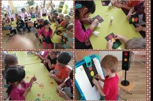Уртанчылар төркемендә "Өч күзле дустыбыз- светофор" исемле кисеп- ябыштыру эшчәнлеге булып узды. Балалар светофор белән таныштылар, аның файдасы турында фикер алыштылар, өч төрле төсенең һәрберсе нәрсә аңлатуы турында таныштылар. Аннары үзләре төсле кәгазьләрдән светофорны ясадылар.
