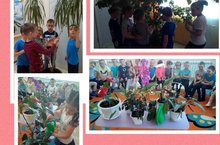 Мәктәпкә әзерлек төркеме балалары белән бүлмә гөлләре: спатифиллум, антуриум, фикус, монстера, орхидея турында сөйләштекләр. Аларга ничек су сибергә, төбен йомшартырга, яфракларын сөртергә өйрәнделәр.