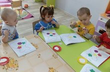 Аппликация в первой младшей группе на тему: "Украсить платье"