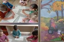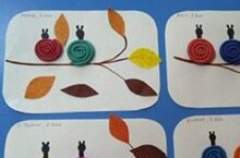 Кечкенәләр төркемендә атналык тема " Көзге урманда". Балалар белән кисеп- ябыштыру эшчәнлегендә әвәләүне кулланып әкәм- төкәмнәр ясадык.