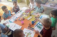 "Күбәләк" балалар бакчасының икенче кечкенәләр төркемендә рәсем "Төрле төстәге җепләр".