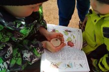 Прогулка в старшей группе.Дети очень любят наблюдать за насекомыми.Азамат принес атлас-определитель А.Плешакова "От земли до неба" и по ней дети сверяют найденных насекомых.Вот сегодня они нашли клопа-солдатика и наблюдали за его поведением.