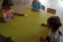 С детьми старшей группы при помощи счетных палочек "пишем" буквы, цифры, решаем примеры. 22.05.2017