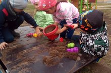 Прогулка в старшей группе.Конструирование из песка "Печем кексы в форме зверюшек". 03.05.2017