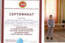 Воспитанник подготовительной к школе группы был награжден сертификатом за участие во II Межрегиональной научно-практической конференции "Моя малая Родина".