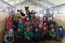 Воспитанники подготовительной группы МБДОУ «Кубэлэк» под руководством воспитателя Абдуллиной Р.Р., мл. воспитателя Емельяновой Г.Р., а также родителей посетили конно - спортивную школу «Аргамак». Ребята прошлись по конюшне, посмотрели, как лошади содержатся в денниках, послушали интересную лекцию про особенности лошадей. Также они получили ответы на такие интересующие вопросы, как: «Для чего нужна лошадям подкова?», «Какое снаряжение используется для лошадей?», «Как выглядит экипировка всадников?»