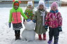 "Күбәләк" балалар бакчасының зурлар төркеме саф һавада бик яратып уйныйлар.Бүген алар, карның җепшек булуыннан файдаланып, кар бабай ясадылар. 27.03.2017