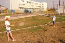 В нашем детском саду дети с большим интересом играют в бадминтон на участке в тёплое время года. -