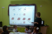 Образовательная область "Познавательное развитие" ФЭМП 24.11.2015 На занятиях по формированию элементарных математических представлений воспитатели используют интерактивные методы обучения.Детям нравится работать на интерактивной доске. Сегодня дети проходили тему "Количество и счет".Развивали умение из неравенства делать равенство,составлять и решать арифметические задачи;закрепили умение составлять число 8 из двух меньших,записывать соответствующими цифрами.