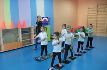 "Гимнастика каждое утро!" 21.10.2015 Каждый день дети 3,4,5,6 групп и их воспитатели в спортивном зале ходят по массажным коврикам. Данные массажные коврики предназначены: -для массажа рефлекторных зон стопы; -для лечения и профилактики плоскостопия; -для укрепления связочно-мышечного аппарата голеностопного сустава; -для нормализации кровоснабжения нижних конечностей; -для релаксации и снятия нервного напряжения.