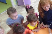 Педагог-психолог Латипова Айсылу Фаритовна с детьми первой младшей группы 28.10.2015 При поступлении в ДОУ дети переживают адаптационный стресс. В связи с этим в детском саду проводится адаптационная деятельность по программе А.С.Роньжиной. Параллельно с решением основной задачи решаются задачи комплексного развития детей: -снятие эмоционального и мышечного напряжения; -снятие импульсивности, тревоги, агрессии; -развитие навыков взаимодействия детей друг с другом; -развитие внимания, восприятия, речи, воображения; -развитие чувства ритма, общей и мелкой моторики; -развитие игровых навыков, произвольного поведения. Деятельность проводится 2 раза в неделю и длится 10-15 минут. Каждая деятельность повторяется 2 раза, чтобы дети запомнили правила игры.