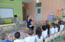 Ачык эшчәнлек 21.10.2015 Бүген «Күбәләк” балалар бакчасы базасында музыка җитәкчеләренең семинары булып узды. “Кояшкай” балалар бакчасының югары категорияле музыка җитәкчесе Хамматуллина В.П., “Карлыгач” балалар бакчасының музыка җитәкчесе Фәрхетдинова Г.В., “Күбәләк” балалар бакчасының педагог-психологы Латипова А.Ф. яшь белгечләргә методик ярдәм итү максатыннан ачык эшчәнлекләр күрсәттеләр. Латипова Айсылу Фәрит кызының "Кояш чык,чык..." темасына "Сөйләм үстерү" һәм "Әдәби-эстетик" белем бирү өлкәләрен берләштергән эшчәнлеге федераль дәүләт белем бирү стандартларына туры китерелеп үткәрелде.
