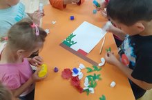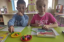 Мәктәпкә әзерлек төркеме балалары белән пластилин белән җиләк-җимешләр ясауны камилләштердек. Балалар аларның формаларын геометрик фигуралар белән чагыштырырга (алма - түгәрәк), охшашлыкларын һәм аермаларын табарга; әвәләгәндә һәр җимешнең үзенчәлекләрен танырга өйрәнделәр, бармаклар белән тигезләү, кысу, тарту алымнарын кулландылар.