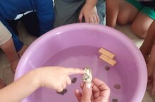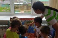 Уртанчылар төркемендә суның әһәмияте турында әңгәмә үткәрдек, суда төрле предметлар белән тәҗрибә үткәрдек; "Балык тоту" уены белән дэвам иттек.