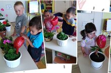 Табигатькә, үсемлекләргә карата мәхәббәт, сак караш, хезмәт хисләре тәрбияләү максатыннан "Табигатьнең яшь дуслары" атналыгының үсемлекләргә багышланган көнендә икенче кечкенәләр төркеме балалары белән бүлмәдәге hәм клумбадагы чәчәкләргә су сибеп, аларга сокланып карадык. Табигатьне күзәтү, аны өйрәнү, сакларга омтылу – балаларның рухи дөньясын баета, уйларга өйрәтә.