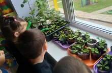 Мәктәпкә әзерлек төркеме балалары белән утырткан петунияләребезне тәрбиялибез. Аларга су сибәбез, чүп үләннәрен чүплибез. Чәчәкләргә кояш яктысы кайсы вакытта төшүне күзәтәбез.