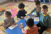 Икенче кечкенәләр төркеме балалары рәсем шөгылендә кояш рәсемен ясарга өйрәнделәр.