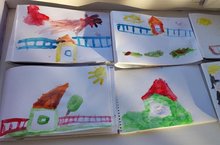 Уртанчылар төркемендә рәсем шөгеле: "Әкияти йорт". Балаларның әкияти төшенчәсен аңлауларына ирешү, гадәти йорт белән әкияти йорт төшенчәсен күрә белергә өйрәндек. Пумала белән эшләү күнекмәсен ныгыттык.