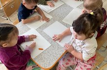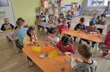Уртанчылар төркемендә кисеп ябыштыру шөгеле: "Такталарны Городец чәчәкләре белән бизик". Рус халкының декоратив-гамәли сәнгать предметлары белән таныштык; кайчы белән эшләү техникасын искә төшердек; мөстэкыйль рәвештә төсләр белү сәләтен үстерү өстендә эшләдек.