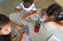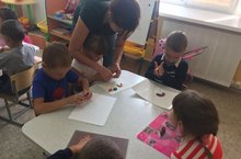 Саф һавага чыгарга мөмкин булмаган очракта, “Ләйсән” балалар бакчасының икенче кечкенәләр төркеме балалары рәсемнәрне буяу белән мәшгуль. Буяулар балалрның тирә-юньгә карата белемнәрен арттыра, төсләр һәм төсмерләр белән таныштыра, предмет белән бәйле булган белемнәрне ныгыта.