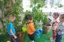 Балаларны бүлмә гөлләрен тәрбияләргә өйрәтү, үстерергә кызыксыну һәм теләк уяту максатыннан уртанчылар төркеме тәрбиячеләре белән кышкы бакча бүлмәсенә сәяхәткә керделәр. Балаларга бүлмә гөлләре өчен кирәкле шартлар тудыру турында мәгълүмат бирелде. Гөлләргә яктылык, җылылык, һава кирәклеге турында әңгәмә үткәрелде.