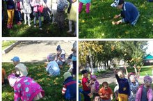 Мәктәпкә әзерлек төркеме балалары саф һавада көзге үзгәрешләрне күзәттеләр .Алтын-сары яфраклардан букет ясадылар.