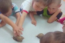 С целью познания и бережного отношения к природе с детьми второй младшей группы провелась беседа про жизнь улиток. Дети своими руками кормили улиток, положили их на лист капусты и они будто почувствовали себя, как дома, начали свободно двигаться.