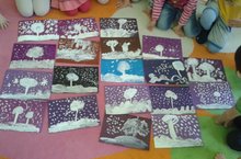 Зурлар төркемендә иҗади сәнгать эшчәнлегендә “Кыш” дигән темага балаларга кышкы табигатькә соклану уяту һәм матурлыкны күрә белергә өйрәтү максатыннан, гуаш һәм пумала белән эшләү тәртибен кулланып балалар пейзаж ясадылар. Эшчәнлек ахырында барсыныңда эшләре күргәзмәгә куелды.