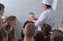 Шәфкать туташы Лилия Флүновна балаларга үзенең эше турында сөйләде, кабинеттагы коралларын һәм җиһазларын күрсәтте, шулай ук балаларны ни өчен гел үлчәнеп торырга, ни өчен туклану һәм сәламәтлекне төгәл күзәтергә кирәклеге турында сөйләде.