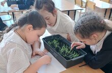 5 нче класс укучылары кресс салат белән тәҗрибә үткәрәләр.