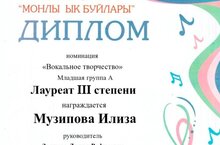 Лицейның "Көмеш нота" түгәрәгендә шөгыльләнүче Мөҗипова Илиза "Моңлы Ык буйлары" V нче региональ балалар һәм яшүсмерләр фестивaлендә катнашып, "җыр" номинациясендә 3 нче дәрәжә лауреат дипломына лаек булды. Җитәксесе Заянова Лилия Рафис кызы бәйгенең рәхмәт хаты белән бүләкләнде.