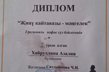 9а сыйныфы укучысы Хәйруллина Азалия «Җиңү кайтавазы мәңгелек» дип исемләнгән I региональ нәфис сүз бәйгесендә 1 урынга лаек булды. Укытучысы- Ситдыйкова Чулпан Индус кызы.