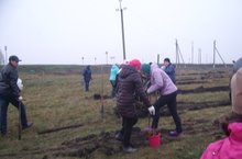 Ученики и учителя школы совместно с общественностью сельского поселения приняли участие в посадке деревьев вокруг территории школы.