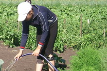 На пришкольном участке убрали лук.