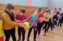 В рамках месячника патриотического воспитания с учащимися начальных классов была проведена спортивная эстафета "Весёлые старты"