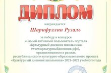 Туган телләр һәм халыклар бердәмлеге елы кысаларында 2 нче сыйныф укучысы Рүзәл Шәрифуллин "Мәдәни көндәлек" конкурсында катнашып дипломга лаек булды!