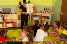 На кружке дети учились пользоваться различными интонациями, произнося фразы грустно, радостно, сердито, удивлённо, строили диалоги, самостоятельно выбрав себе партнёра. Также на круке были использованы различные этюды на развитие эмоциональной сферы, которые вырабатывают у детей способность понимать эмоциональное состояние другого человека, умение адекватно выразить своё. Этюды помогают ребёнку осознать себя, посмотреть на себя со стороны, способствуют формированию самоконтроля.