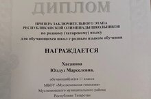 Татар мәктәпләрендә белем алучы укучылар өчен татар теленнән узган республика олимпиадасының йомгаклау этабында Мөслим гимназиясенең 11 нче сыйныф укучысы Хәсәнова Йолдыз (укытучысы - Гөлшат Мирзамуратова) призёр булды. Котлыйбыз!