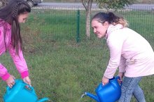 Көз бу елны җылы һәм яңгырлы килүгә карамастан, гимназия территориясендәге агач-үсентеләрне гомуми карап тору мөхим. 7 сыйныф укучылары бу кагыйдәләрне истә тотып территориядәге агачларга су сибергә чыктылар.
