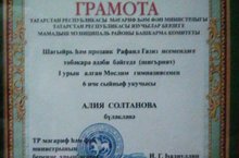 6б сыйныф укучысы Солтанова Алия Мамадыш шәһәрендә үткән шагыйрь һәм прозаик Рафил Газиз исемендәге төбәкара әдәби бәйгедә беренче урын яулады. Котлыйбыз, Алия, киләчәктә дә зур уңышлар сиңа.