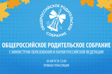 Уважаемые родители! 30 августа в 12 часов по московскому времени состоится III Общероссийское родительское собрание с участием министра образования и науки Российской Федерации О. Ю. Васильевой.